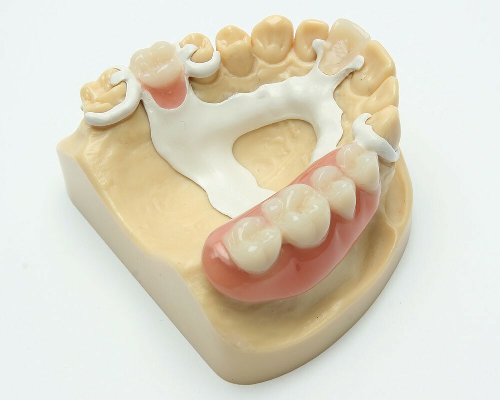 Бюгельное протезирование Бюгельный протез это съемный зубной протез на металлической основе. Металлический литой каркас крепится на зубы и перегружает их, за счет чего они быстрее портятся. Это рабочий метод, который можно применять в некоторых случаях, но своим пациентам мы рекомендуем использовать ацеталь, вместо бюгельных протезов.